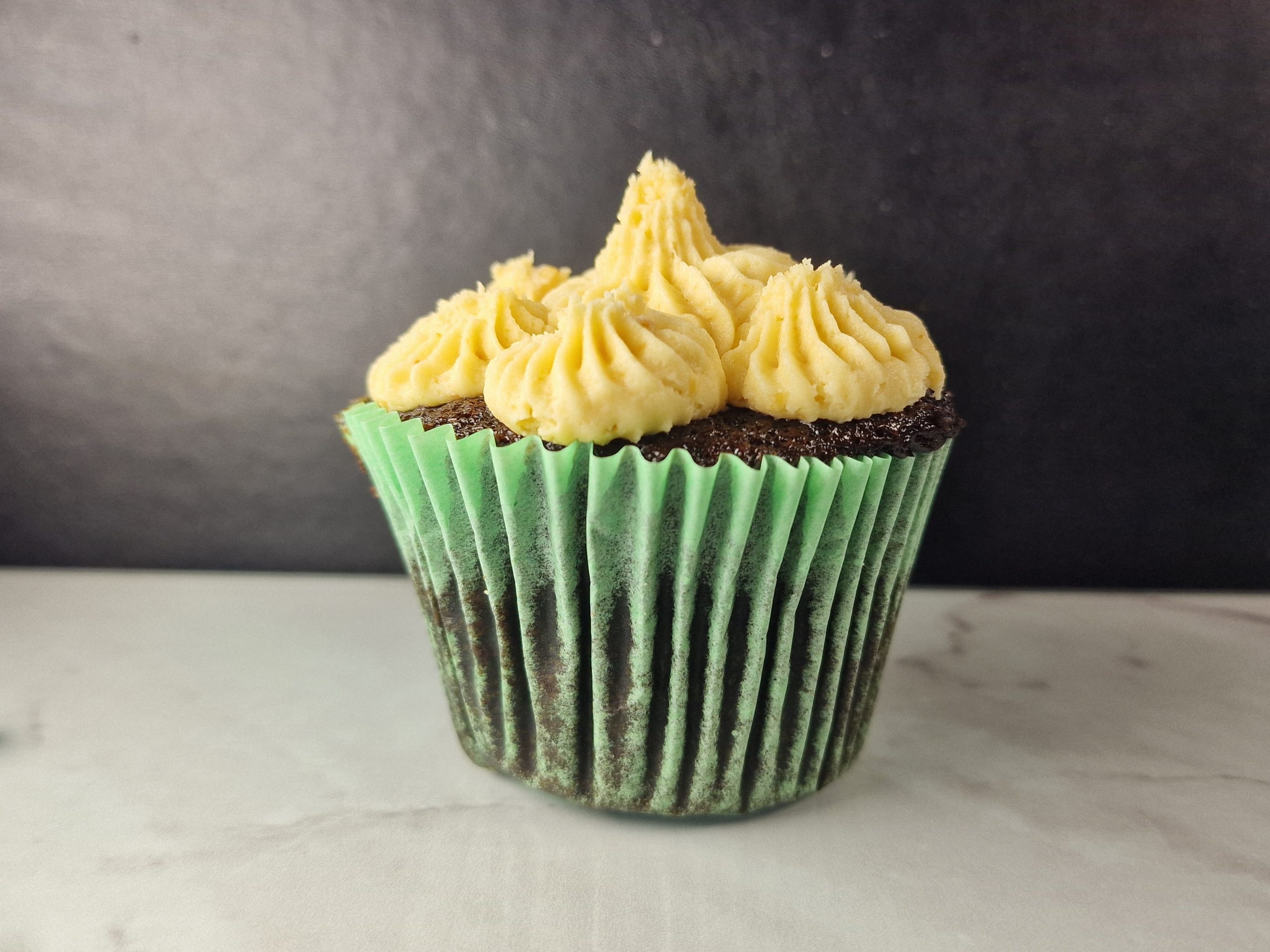 April 27, 2024Chocolate cupcakes with a fresh crunchy peanut butter buttercream.